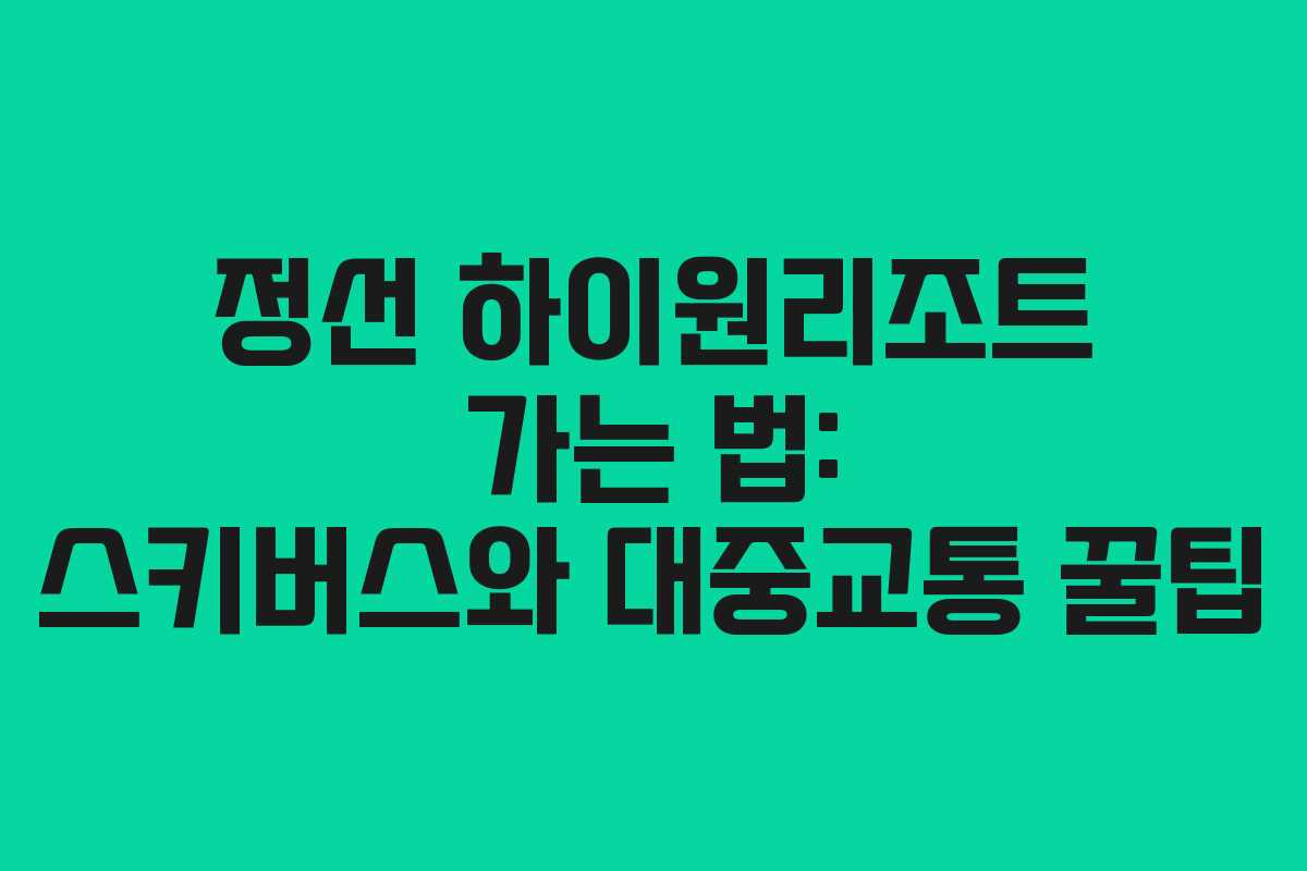 정선 하이원리조트는 스키와 관광을 즐기기에 최적의 장소입니다. 이번 글에서는 자가용을 제외한 스키버스, 무궁화호, 고속버스 등 다양한 대중교통 수단을 이용해 정선 하이원리조트에 가는 방법을 소개하겠습니다.