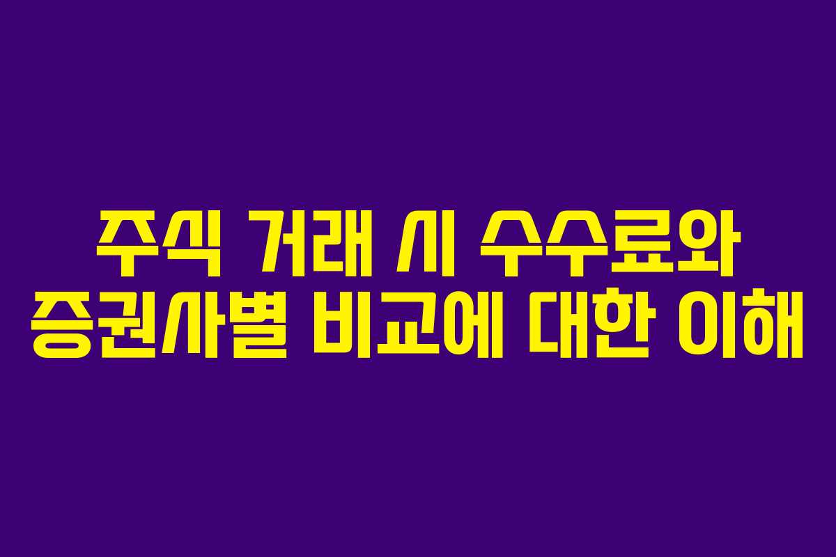 - 주식 거래 시 발생하는 수수료의 종류와 특징