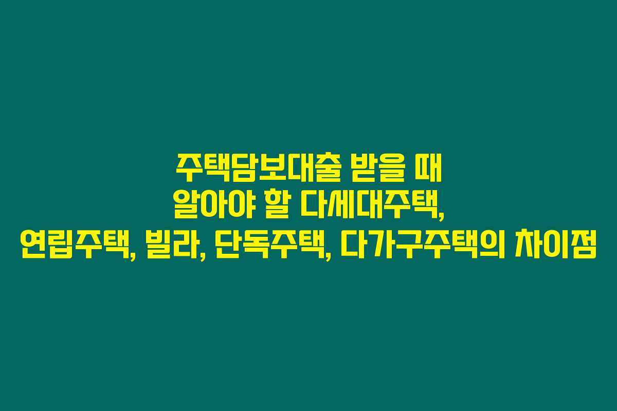 주택담보대출, 다세대주택, 연립주택, 단독주택, 다가구주택, 금융, 대출 한도, 감정가, 자산 관리, 주택소유