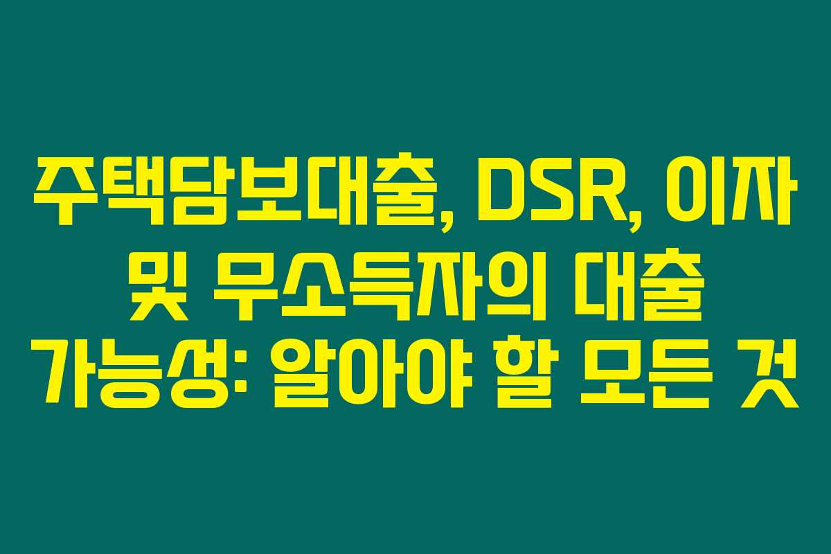 주택담보대출, DSR, 이자 및 무소득자의 대출 가능성: 알아야 할 모든 것