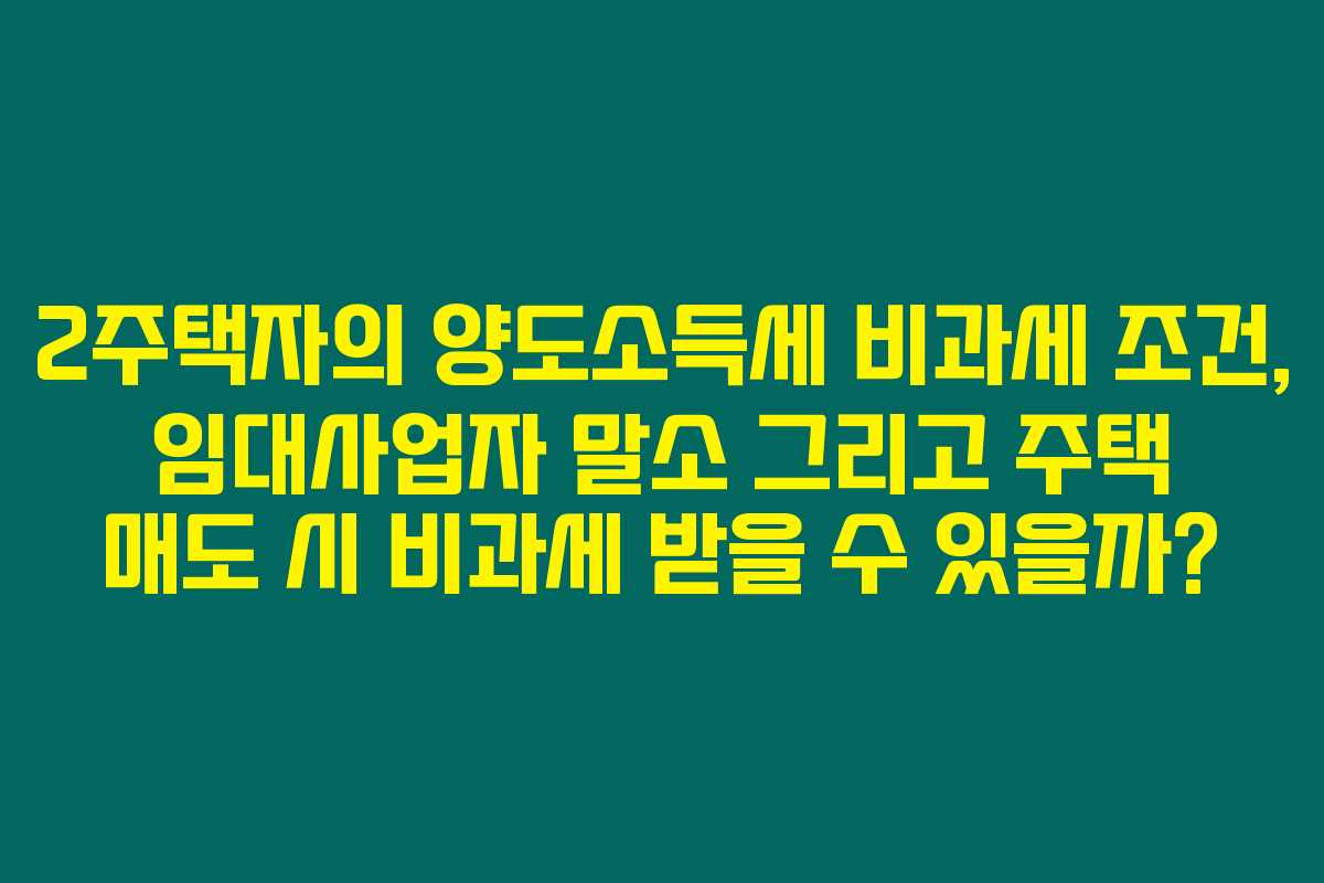제가 직접 경험해본 바로는, 2주택자가 양도소득세 비과세 혜택을 받기 위해서는 임대사업자 말소 후 주택 매도 시 유의해야 할 사항이 많습니다. 특히 아파트 매도와 새로운 주택 매수와 같은 상황에서는 더욱 복잡해지기 때문이에요. 아래를 읽어보시면, 이러한 비과세 혜택을 제대로 이해하고 활용하는 데 큰 도움이 될 것입니다.