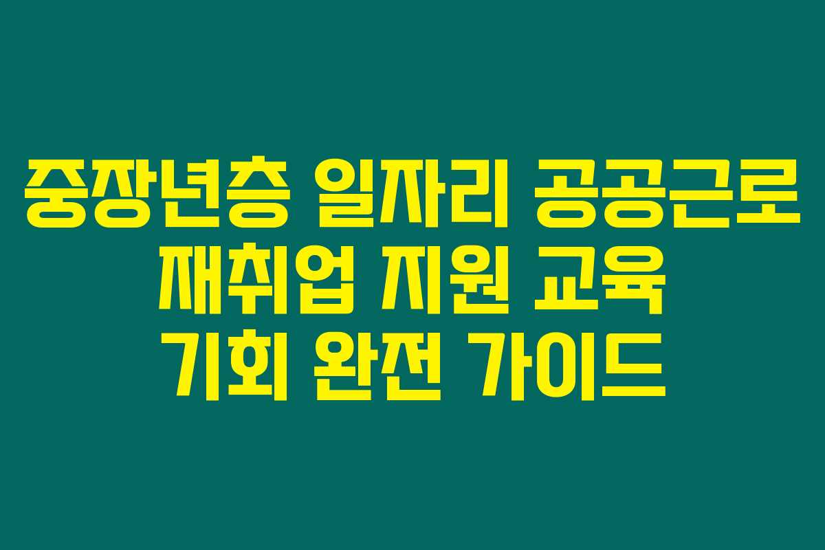 중장년층 일자리 기회를 키워드로 이 글에서는 공공근로와 재취업 지원 등 다양한 프로그램을 통해 중장년층이 안정적인 삶을 영위할 수 있는 방법을 알아보려 해요. 은퇴 뒤에도 여전히 사회에 기여하며 경제적 안정성을 찾고 싶다면 지금 바로 알아보세요! 여러분의 새로운 출발층이 될 수 있어요.