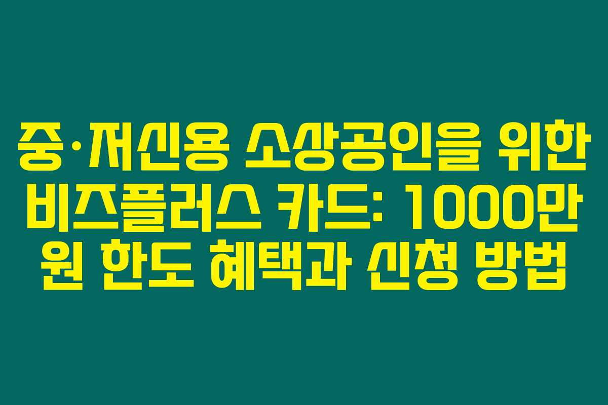 비즈플러스 카드는 중·저신용 소상공인에게 실질적인 혜택을 제공하며, 이는 사업의 안정성과 성장을 도울 수 있는 좋은 기회입니다. 지원대상에 해당하는 분들은 꼭 신청해보시길 바래요. 여러분의 성공적인 사업 운영을 응원합니다!