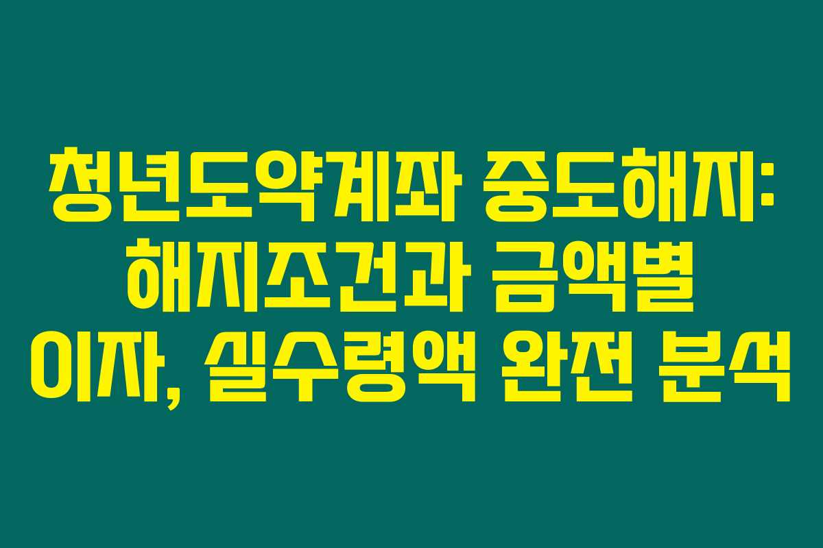 청년도약계좌에 가입한 많은 청년들이 중도해지 시 어떤 금액을 받을 수 있을지 궁금해하고 있죠. 특히, 중도해지로 인한 손실이나 불이익을 피하고 싶으실 겁니다. 아래를 읽어보시면 청년도약계좌 중도해지에 따른 조건과 금액별 이자, 실수령액을 상세히 알려드릴게요.