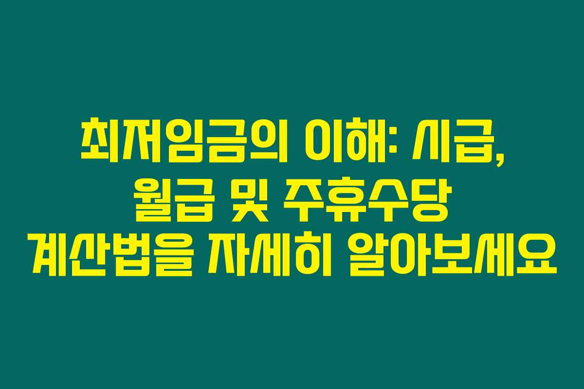제가 직접 경험해본 결과로는, 최저임금은 근로자들이 이해하고 활용해야 할 중요한 요소입니다. 이 글에서는 최저임금, 시급, 월급, 그리고 주휴수당의 계산법을 상세히 알려드립니다. 아래를 읽어보시면, 최저임금과 관련하여 꼭 알아야 할 정보를 제공합니다.