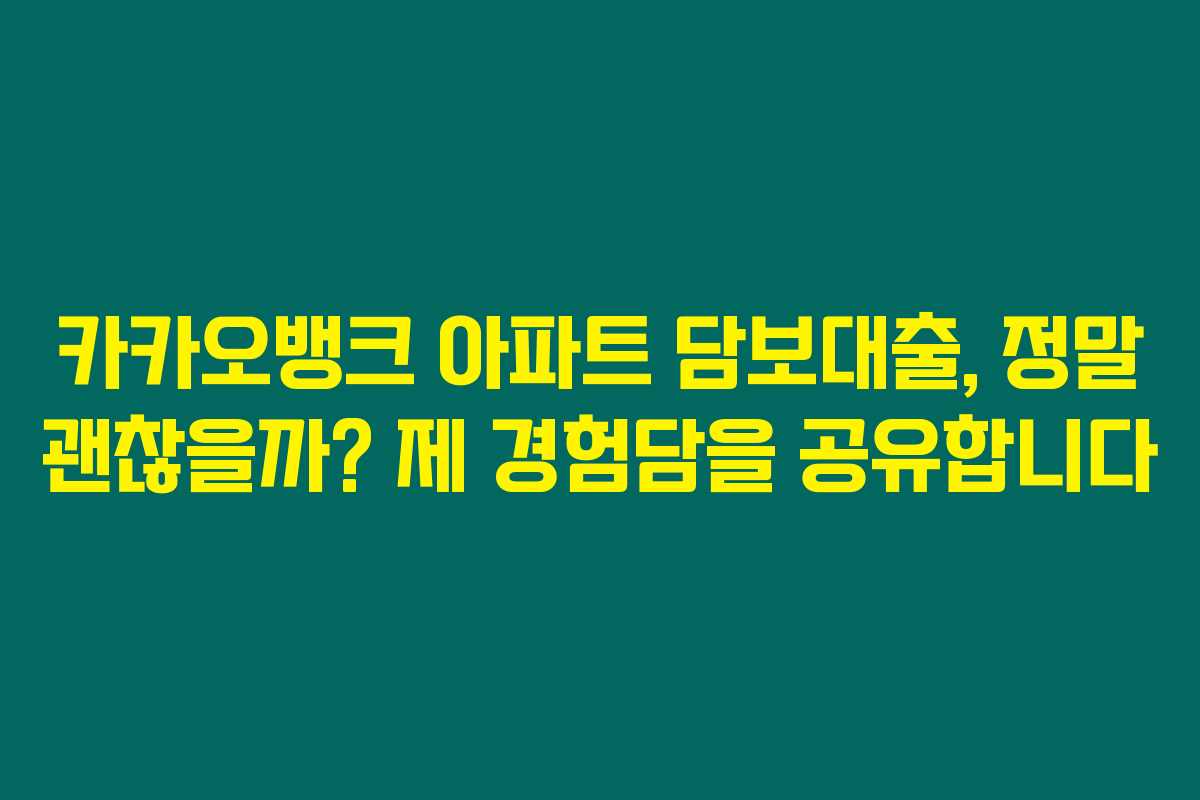 카카오뱅크 아파트 담보대출, 정말 괜찮을까? 제 경험담을 공유합니다