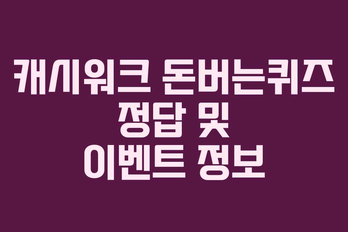 캐시워크는 사용자들에게 다양한 퀴즈와 이벤트를 통해 재미와 보상을 제공하는 서비스입니다. 오늘의 퀴즈와 함께 진행 중인 특별 이벤트에 대해 알아보겠습니다.