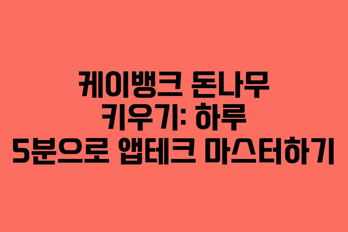 케이뱅크의 돈나무 키우기를 통해 매일 5분으로 재테크를 시작해 보세요. 작은 습관이 큰 변화를 만들어낼 수 있습니다!