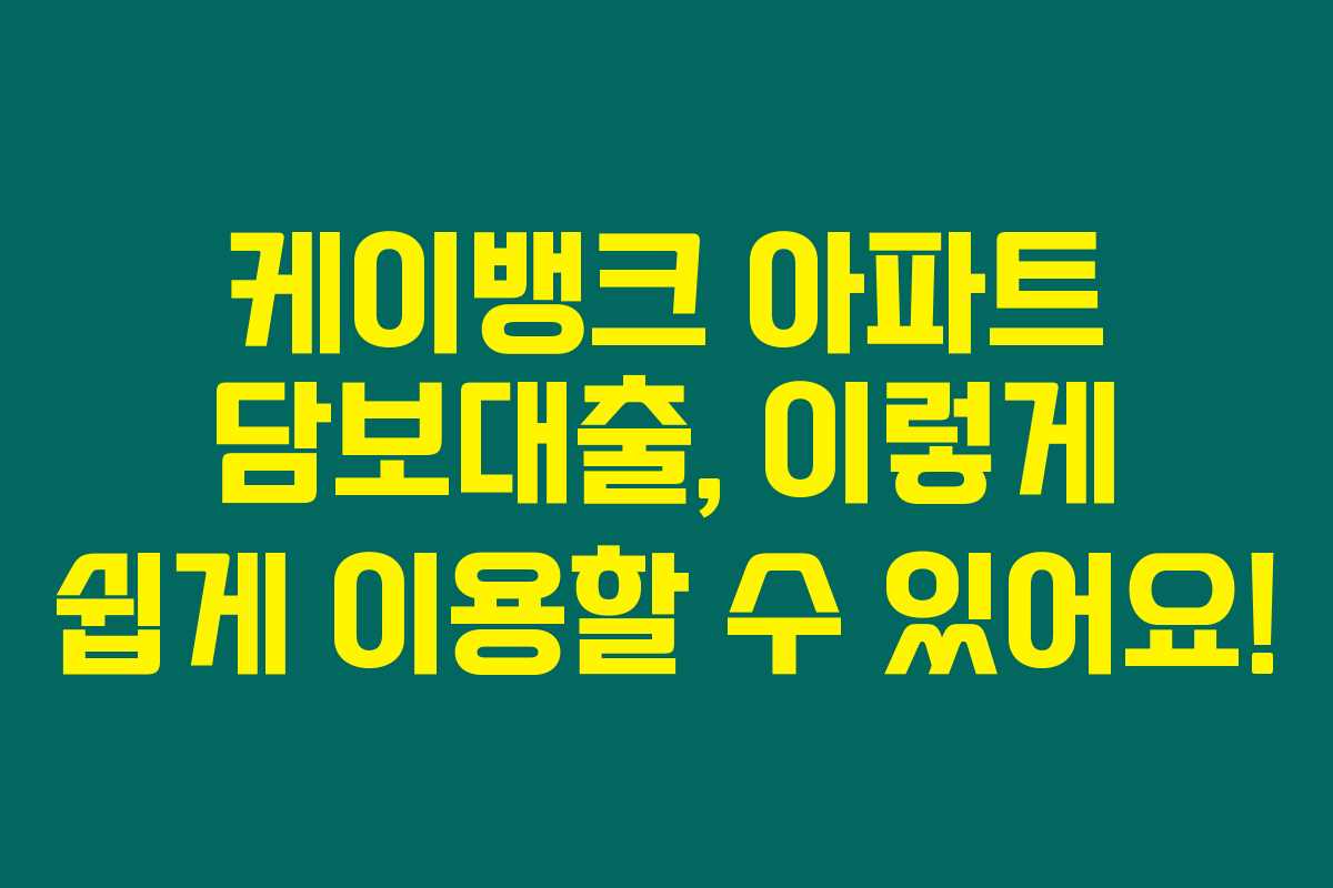 케이뱅크 아파트 담보대출은 특정 조건을 충족해야 신청할 수 있어요. 제가 경험해본 바로는 다음과 같은 요건이 있어요: