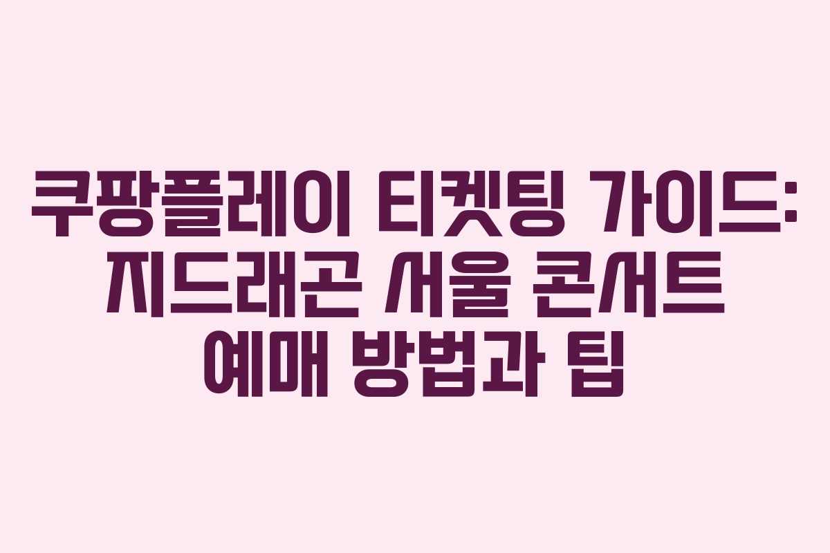 이번 지드래곤의 서울 콘서트 티켓팅은 쿠팡플레이에서 진행됩니다. 예매 일정과 방법을 잘 숙지하여 성공적인 티켓팅을 하시길 바랍니다!