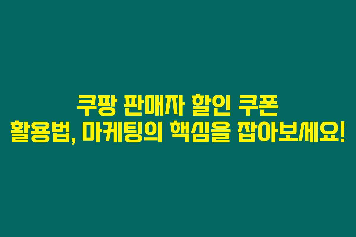 쿠팡 판매자 할인 쿠폰 활용법, 마케팅의 핵심을 잡아보세요!