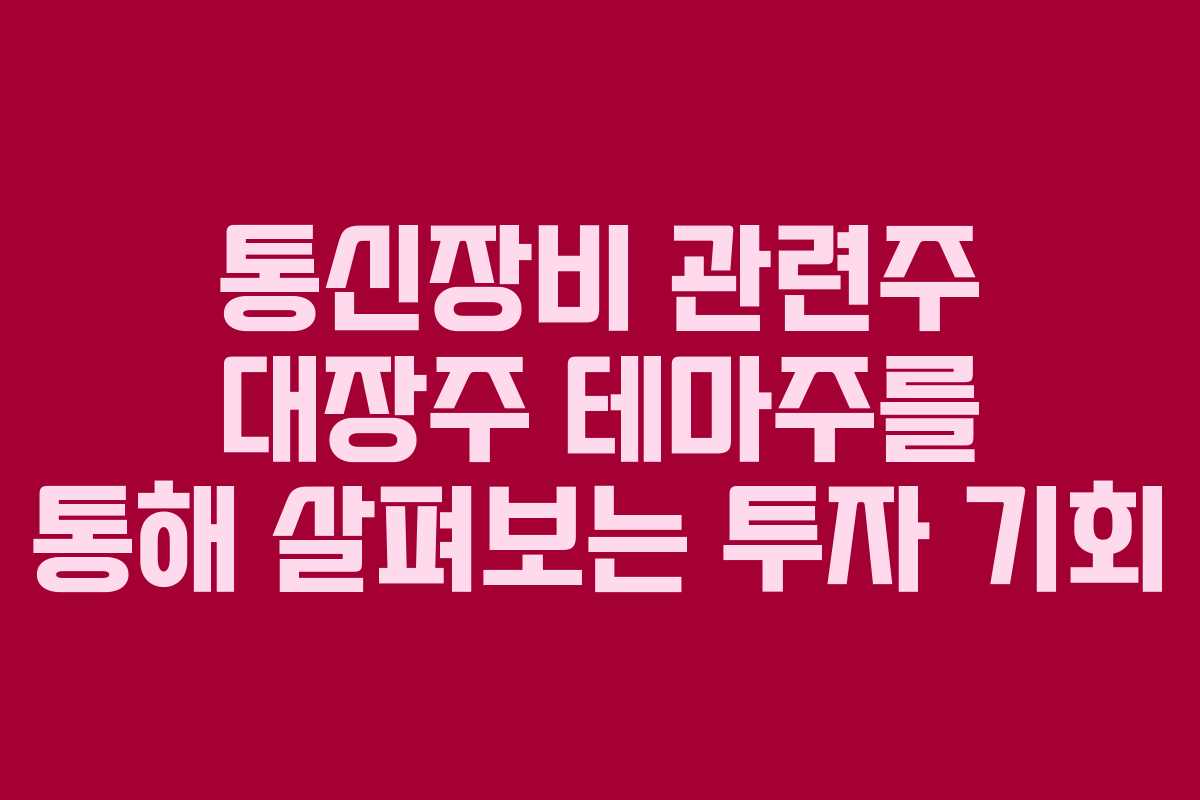 통신장비 산업은 최근 몇 년 동안 급격한 성장을 보여주었으며, 특히 2026년에는 더 많은 변화를 예상할 수 있습니다. 이 글에서는 통신장비 관련주 대장주와 테마주에 대해 깊이 있는 분석을 제공하고, 투자에 도움이 될 만한 정보를 나누고자 합니다.
