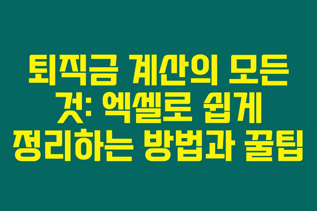 퇴직금 및 퇴직소득세를 엑셀로 쉽게 계산하는 방법에 대해 알아보았습니다. 위의 정보와 수식을 활용하셔서 여러분의 퇴직금을 정확히 계산해 보시길 바랍니다!