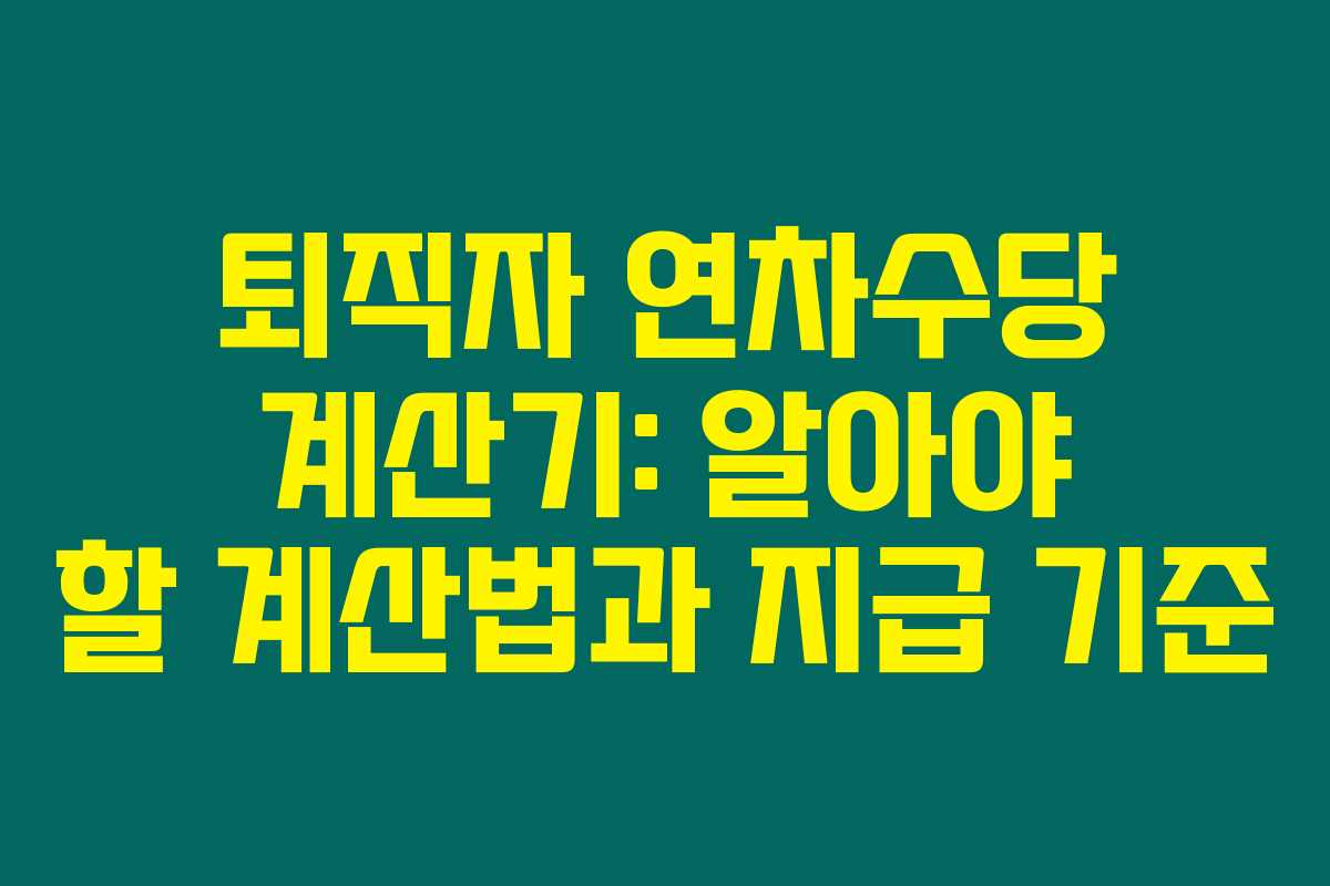 제가 직접 경험해본 결과로는 퇴직자 연차수당을 올바르게 계산할 수 있는 방법과 그 지급 기준에 대해 아는 것이 매우 중요하답니다. 퇴직 후 재정적 안정을 위해 준비해야 할 여러 가지 사항 중 하나가 바로 연차수당이며, 아래를 읽어보시면 이와 관련된 유용한 정보가 담겨 있습니다.