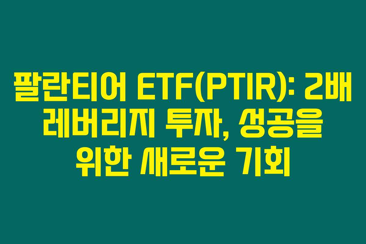 제가 직접 경험해본 결과로는, 팔란티어 ETF(PTIR)는 최근 투자자들 사이에서 큰 주목을 받고 있습니다. 이 ETF는 팔란티어의 주식에 2배 레버리지를 활용하여 투자할 수 있는 독특한 기회를 제공하기 때문입니다. 아래를 읽어보시면 이 ETF의 구조와 수익성, 그리고 투자 전략에 대한 전반적인 이해를 도울 수 있을 것입니다.