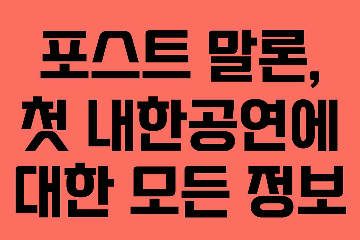 포스트 말론 내한공연은 2023년 9월 23일 저녁 7시에 시작된다. 공연 장소는 경기 고양 일산 킨텍스 1전시장 4홀과 5홀을 통합한 대규모 공연장이다. 공연에 대한 구체적인 정보는 다음과 같다.