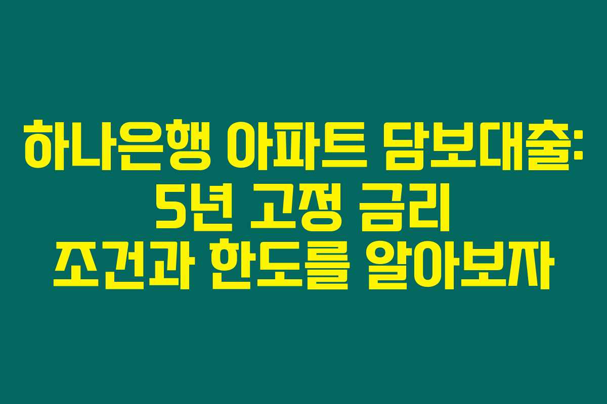 제가 직접 경험해본 결과로는, 아파트 구매는 인생의 중요한 결정을 좌우하는 재정적 요소 중 하나로, 적절한 대출 상품 선택이 큰 차이를 만들어 냅니다. 하나은행의 5년 고정 금리 아파트 담보대출은 이러한 점에서 매우 유리한 조건을 가지고 있다고 생각해요. 아래를 읽어보시면 하나은행의 대출 조건과 한도에 대해 자세히 알아보실 수 있습니다.
