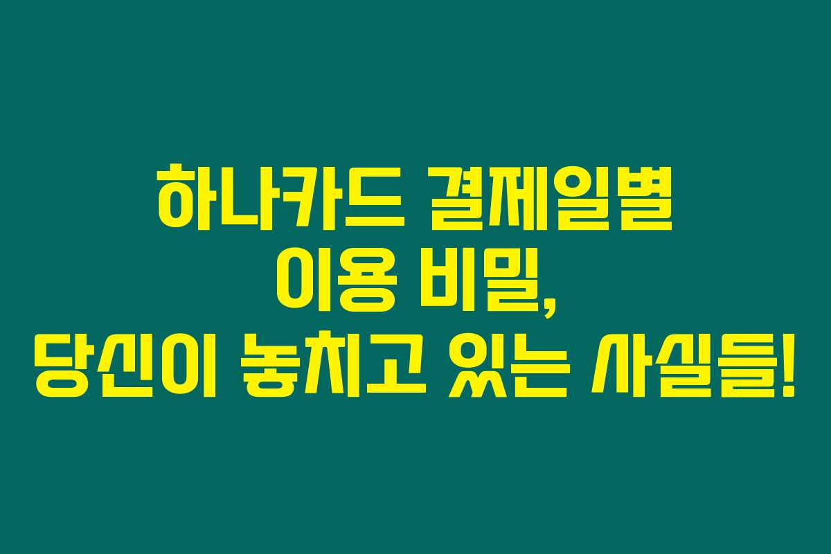 하나카드 결제일은 단순한 날짜가 아닙니다. 결제일에 따라 큰 비용 편익이 존재할 수 있는데요. 아래를 읽어보시면, 결제일별 이용 비밀과 활용 팁에 대해 깊이 있게 알아보실 수 있습니다. 결제일을 놓치지 않고 효과적으로 관리하려면 꼭 읽어보세요!