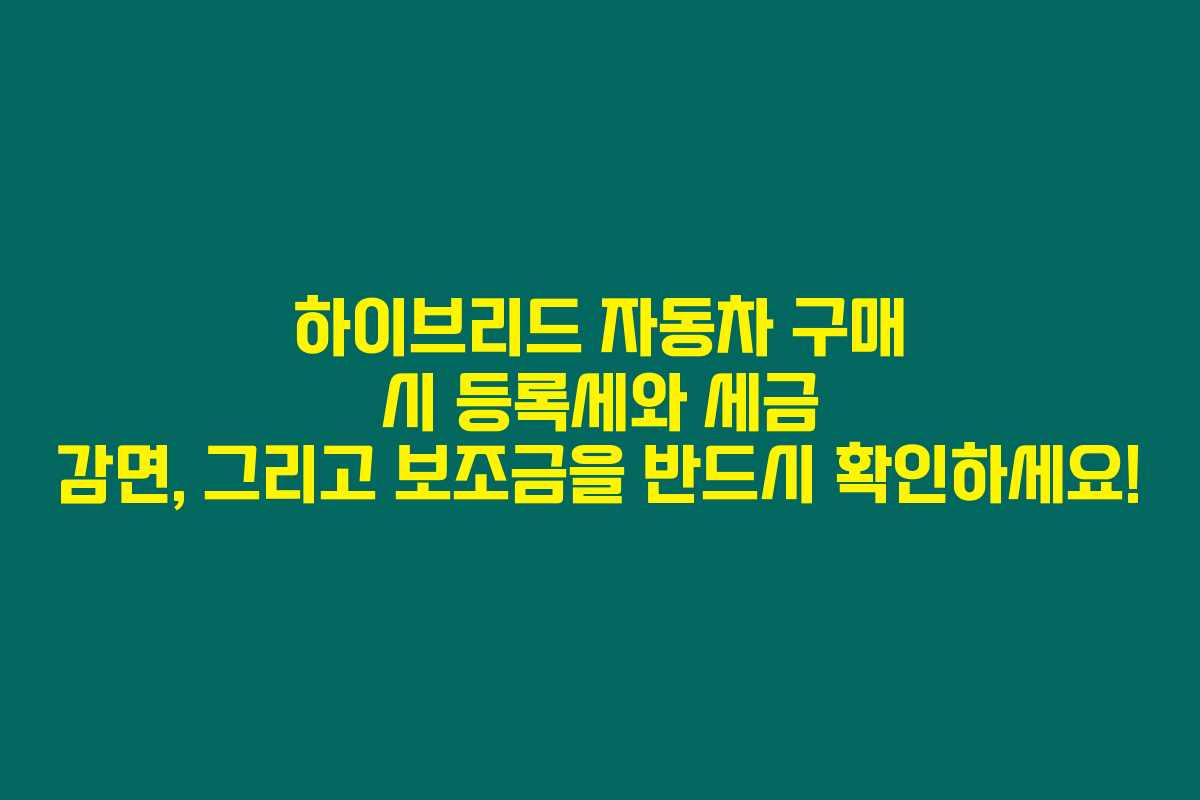 하이브리드 자동차를 구매할 때 어떤 세금 혜택과 보조금 지원이 있는지 지금 바로 알아보아요!