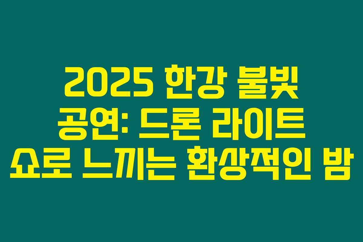 서울의 밤하늘에 펼쳐지는 드론 라이트 쇼를 경험하고 싶다면, 2025 한강 불빛 공연을 주목해 보세요. 이 공연은 단순한 드론 쇼가 아닌 문화예술공연과 함께 진행돼 더욱 풍성한 즐거움을 선사해 준답니다. 아래를 읽어보시면, 이 특별한 공연에 대한 모든 정보를 알아보실 수 있을 거에요!