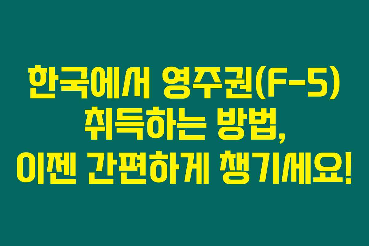 한국에서 영주권(F-5) 취득하는 방법, 이젠 간편하게 챙기세요!