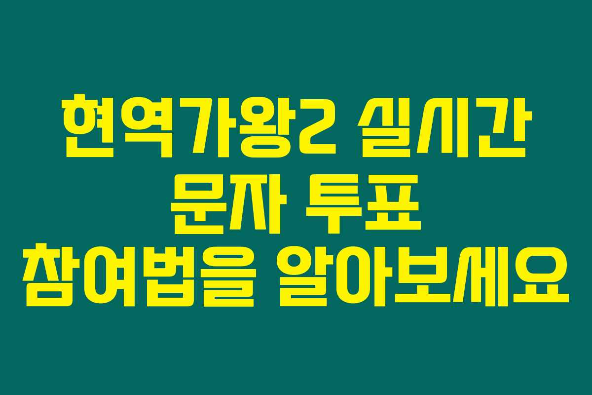 현역가왕2 실시간 문자 투표는 간단하고 재미있는 참여 방법이랍니다. 응원하고 싶은 그 뜨거운 마음으로, 손쉽게 문자로 내 마음을 표현해 보세요. 응원이 모여 멋진 무대를 만들어줄 거예요. 2024년 2월 13일, 방송 시간에 잊지 마시고 참여하시길 바랍니다!