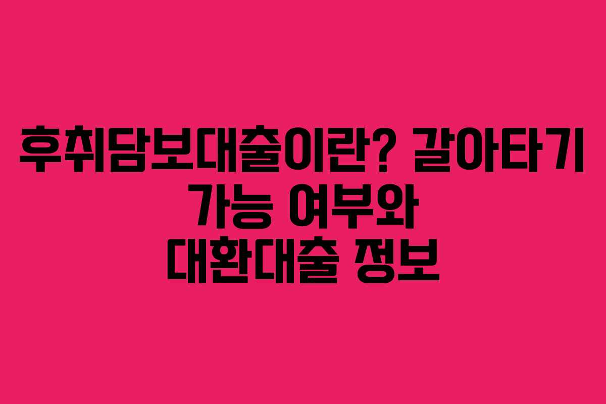 최근 주택담보대출 갈아타기 열풍이 불면서 많은 사람들이 후취담보대출의 대환대출 가능성에 대해 궁금해하고 있습니다. 이번 글에서는 후취담보대출의 정의와 대환대출 가능 여부, 참여 금융사에 대해 자세히 알아보겠습니다.