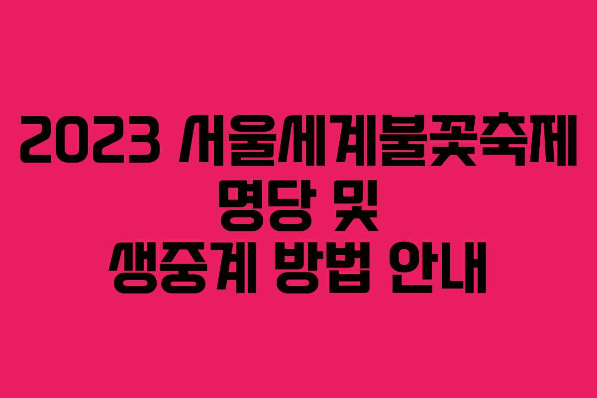 서울세계불꽃축제는 매년 많은 이들에게 즐거움을 주는 이벤트로 자리잡고 있습니다. 2023년에는 더욱 특별한 불꽃쇼가 예정되어 있으며, 다양한 정보를 통해 축제를 만끽할 수 있는 방법을 소개합니다.