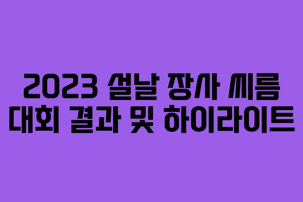 2023년도 설날 장사 씨름 대회가 뜨거운 열기로 가득 차 있었습니다. 특히 영암군에서 열린 금강장사와 한라장사, 백두장사 결정전은 많은 팬들의 관심을 받았으며, 각 선수들의 멋진 기량이 돋보였던 순간들이었습니다.