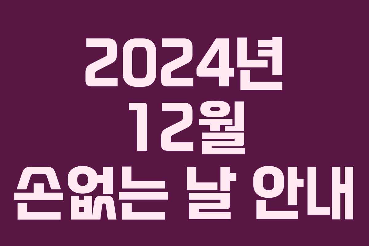 손없는 날은 이사와 결혼 준비를 할 때 중요한 날짜로 여겨집니다. 이 날은 귀신이나 악귀가 활동하지 않는 날로 믿어져, 많은 이들이 이러한 전통을 따릅니다. 이번 포스팅에서는 2024년 12월 손없는 날을 정리하였습니다.