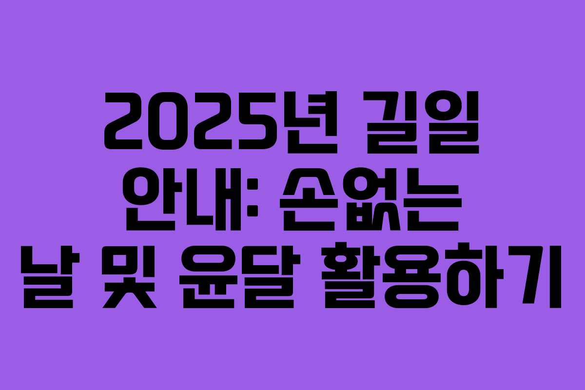 2025년은 윤달이 포함되어 있어 집수리, 이사, 묘지 이장 등을 계획하는 분들에게 특히 중요한 해입니다. 미리 예약을 통해 원하는 날짜에 행사 진행이 가능하므로, 아래의 길일 안내 달력을 활용해 보시기 바랍니다.