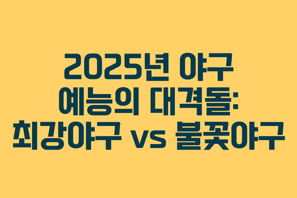 2025년, 대한민국 야구 예능의 새로운 전쟁이 시작됩니다. 오랜 시간 동안 사랑받아온 ‘최강야구’와 원년 멤버들이 대거 참여한 ‘불꽃야구’가 각자의 길을 걷게 되면서, 팬들의 이목이 집중되고 있습니다. 이번 글에서는 두 프로그램의 차이점과 방송 일정, 팬들이 알아야 할 직관 예매 정보까지 상세히 정리해 드리겠습니다.