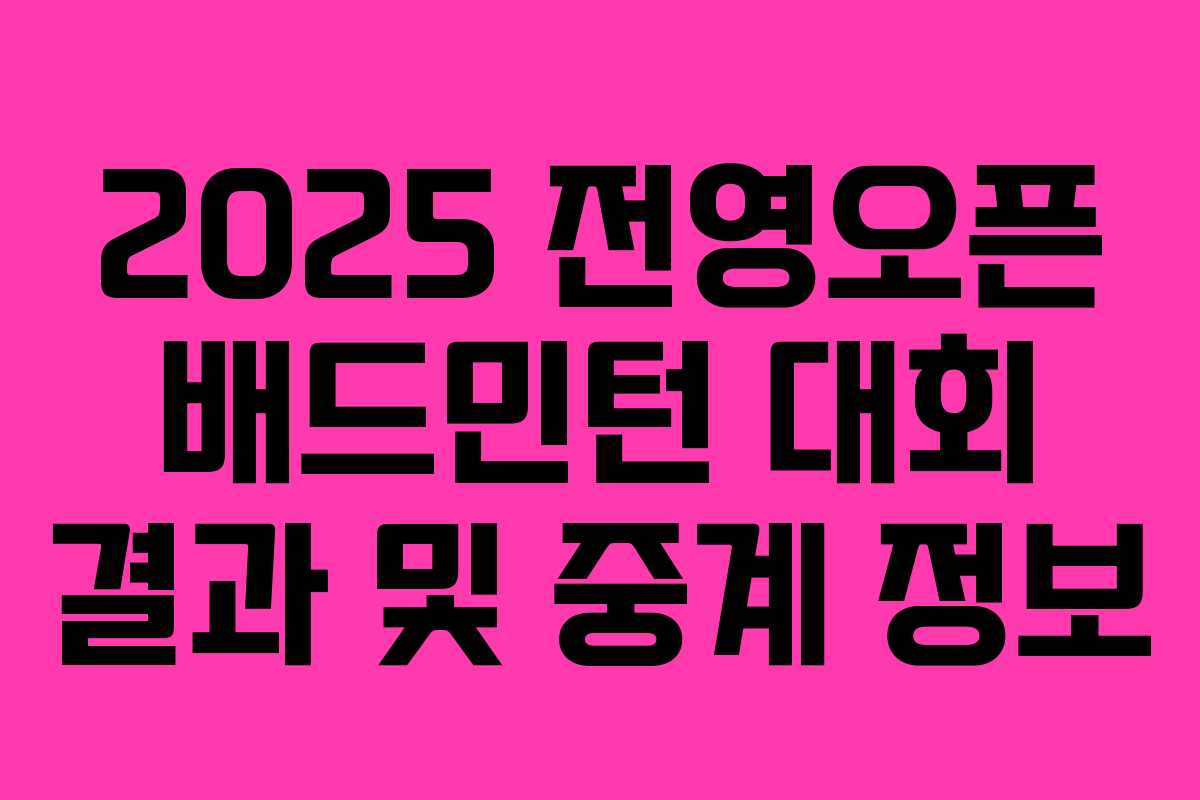 2025 전영오픈은 선수들이 올림픽을 준비하는 중요한 대회로, 많은 응원과 격려가 필요합니다. 대한민국 선수들이 국제 무대에서 멋진 경기를 펼치는 모습을 기대하며, 앞으로의 대회 소식도 많은 관심 부탁드립니다. 배드민턴 사랑이 더욱 커지기를 바라며, 다음 기회에 더욱 흥미로운 소식으로 찾아뵙겠습니다!
