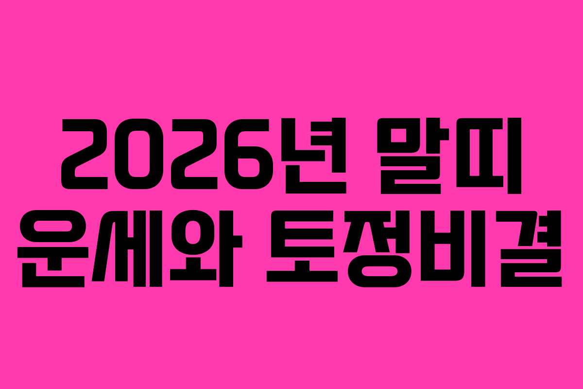 2026년은 병오년으로, 말띠에게는 다양한 운세와 기회가 펼쳐질 해입니다. 이 글에서는 말띠의 운세와 함께 다른 띠별 토정비결을 살펴보고, 각 띠의 특징적인 운세 지수를 분석하겠습니다.