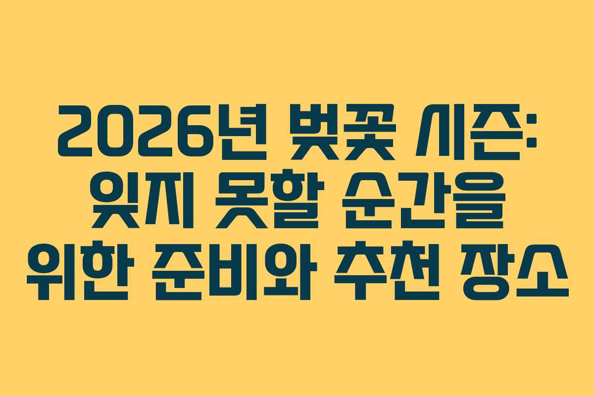 매년 봄이 찾아오면 우리는 벚꽃이 만개할 시기를 설레는 마음으로 기다리게 됩니다. 2026년은 특별한 해로, 많은 이들이 다시 한번 벚꽃의 아름다움을 만끽할 기회를 맞이하게 됩니다. 이 글을 통해 벚꽃 시즌에 대한 정보와 추천 장소를 안내하고자 합니다.