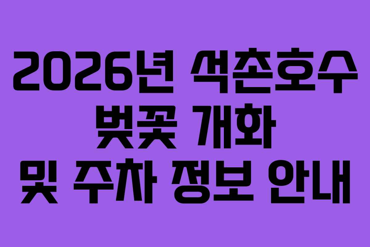 2026년 석촌호수 벚꽃축제는 많은 사람들이 기다리는 행사 중 하나입니다. 벚꽃이 만개하는 시기에 맞춰 많은 이들이 석촌호수를 찾는 만큼, 벚꽃 개화 상황과 주차 정보는 특히 중요합니다. 이번 포스팅에서는 석촌호수의 벚꽃 개화 현황과 함께, 주차 정보를 자세히 안내하겠습니다.