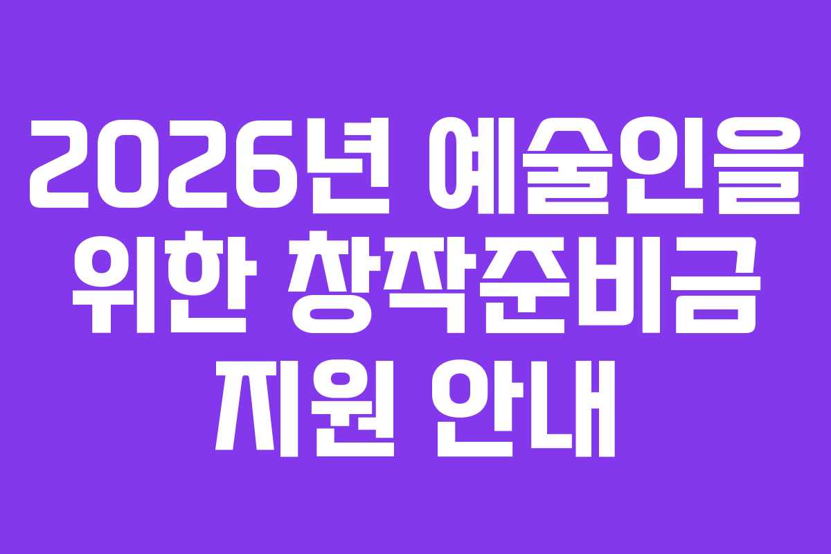 2026년 예술인을 위한 창작준비금 지원 안내