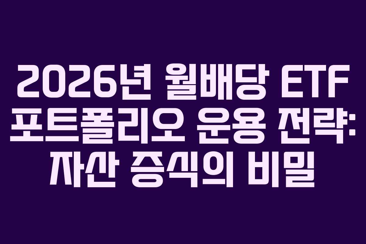 2026년의 투자 환경에서 월배당 ETF 포트폴리오를 어떻게 관리할지에 대한 실전 전략을 제시합니다. 자산을 불리는 핵심은 단순히 포트폴리오를 구성하는 것에 그치지 않으며, 어떻게 운용하느냐에 따라 결과가 크게 달라질 수 있습니다. 따라서 이 글에서는 배당 재투자 및 리밸런싱 전략에 대해 심층적으로 다뤄보겠습니다. 특히, 초고배당 커버드콜의 한계를 극복하고, ISA 및 연금 계좌를 활용한 절세 방법도 함께 논의할 것입니다.