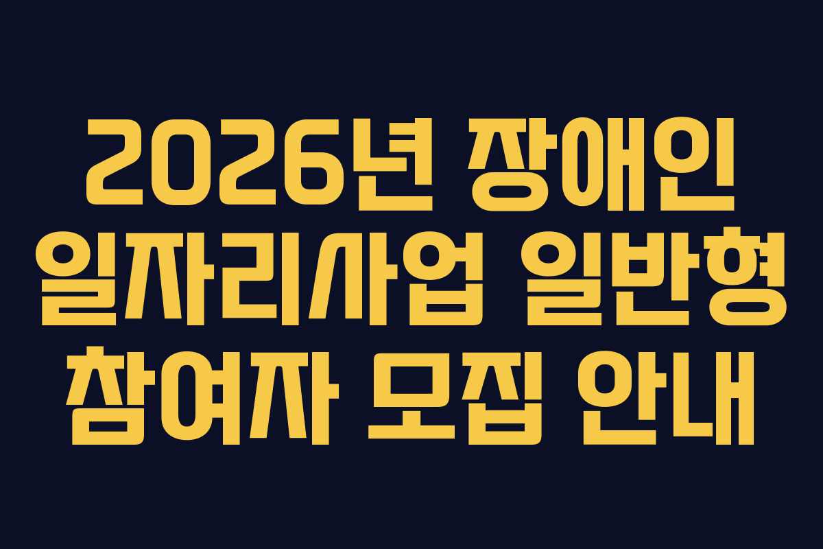 2026년 장애인 일자리사업 일반형 일자리 (전일제 및 시간제)