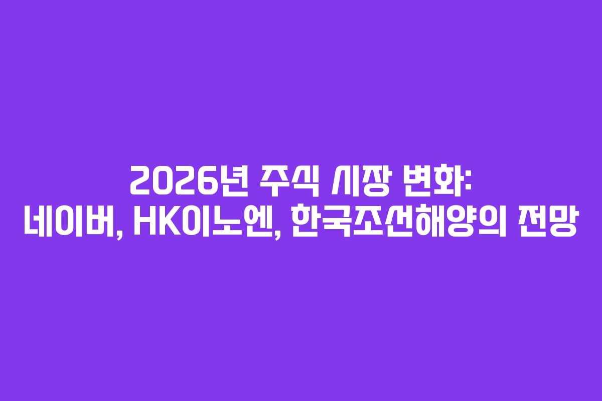 2026년 상반기를 맞이하여 주식 시장의 흐름을 점검하고 주요 기업들의 전망을 살펴보는 것은 투자자들에게 매우 중요한 과제가 되었다. 네이버, HK이노엔, 한국조선해양에 대한 분석을 통해 각 기업의 향후 전략과 시장에서의 위치를 이해하는 데 도움을 줄 수 있을 것이다.
