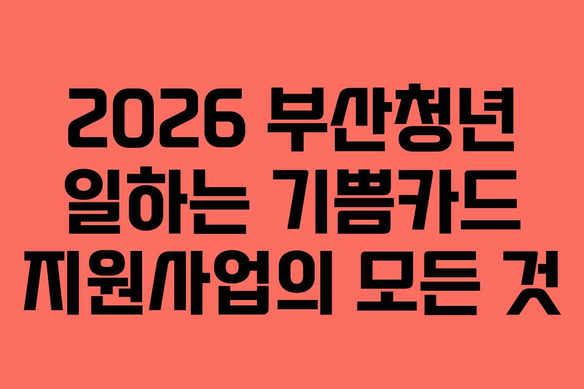부산광역시와 부산경제진흥원에서 제공하는 2026 부산청년 일하는 기쁨카드 지원사업은 청년 근로자에게 다양한 복지 혜택을 제공합니다. 이 사업은 문화 여가, 자기 개발, 건강 관리 등 다양한 분야에 사용할 수 있는 복지 포인트를 지급하여 청년들이 더욱 활기차고 즐겁게 일할 수 있는 환경을 조성하기 위해 마련되었습니다. 본 가이드는 2026년 기준으로 업데이트된 내용을 바탕으로 신청 방법, 지원 대상 및 세부사항에 대해 자세히 안내합니다.