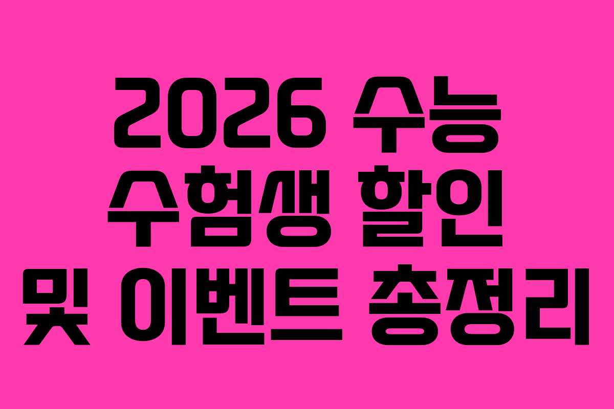 2026 수능 수험생에게 제공되는 할인과 이벤트는 매년 크게 달라지지 않으며, 카페, 영화관, 패션, 뷰티, 통신사 등 다양한 업종에서 폭넓게 진행됩니다. 이번 글을 통해 수능 이후 받을 수 있는 혜택을 빠르게 파악하고, 놓치는 할인 없이 알뜰하게 활용하시기 바랍니다. 좋은 이벤트와 할인 정보가 생기면 추가로 업데이트하겠습니다.