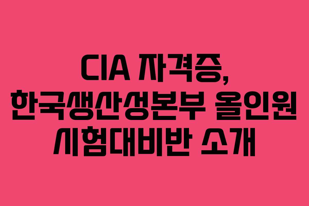 공인내부감사사(CIA) 자격증은 내부 감사 분야에서의 전문성을 인정받는 국제자격증으로, 많은 사람들이 이 자격증을 취득하고자 노력하고 있습니다. 이번 포스팅에서는 한국생산성본부(KPC)에서 제공하는 CIA 자격증 올인원 시험대비반에 대해 자세히 알아보겠습니다.