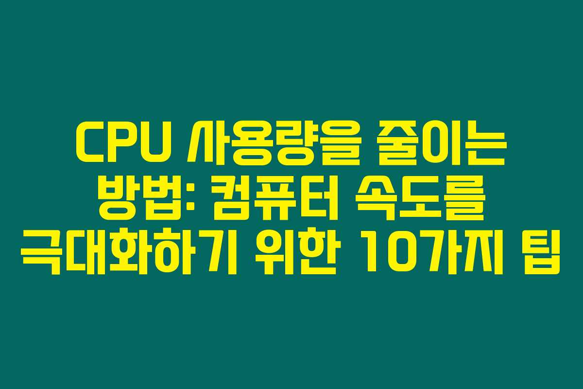 디지털 시대에서 CPU 사용량 관리의 중요성에 대해 알아보겠습니다. 제가 직접 경험해본 바로는, 윈도우에서 CPU 사용량이 높으면 시스템 성능에 큰 영향을 미치기 때문에, 이를 효과적으로 줄이는 방법이 필수적이라 생각합니다. 아래를 읽어보시면 CPU 사용량을 줄이는 유용한 팁을 확인하실 수 있습니다.