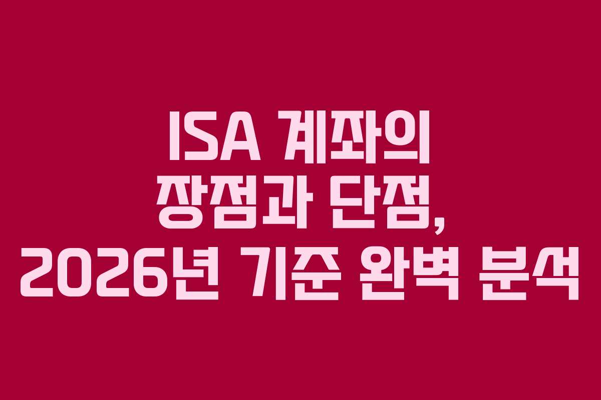 ISA 계좌의 장점과 단점은 무엇인가요?