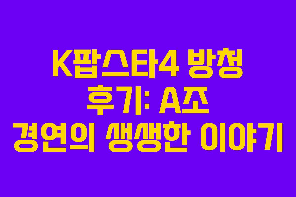 K팝스타4의 A조 경연 방청 후기를 전합니다. 생방송의 현장감과 참가자들의 긴장감, 그리고 그 속에서 느낀 감동을 생생히 전달하고자 합니다.