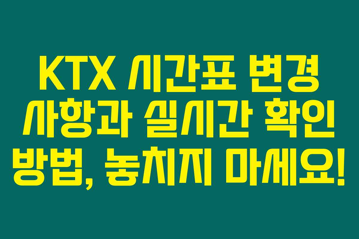 KTX는 대한민국의 대표 고속열차죠. 하지만 특히 연휴나 명절 기간에는 시간표가 자주 변경되니, 아래 내용을 읽어보시면 어떻게 대처할 수 있는지 배울 수 있어요.