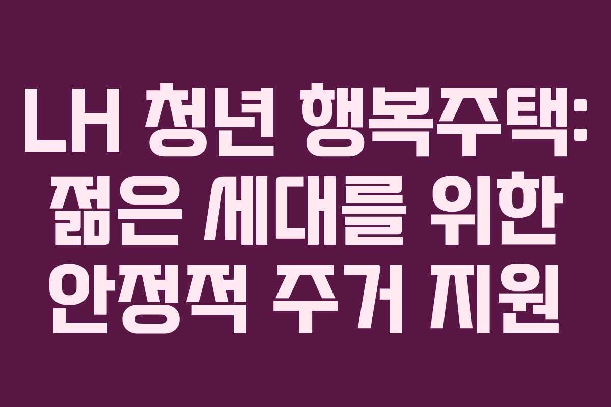 LH 청년 행복주택은 대학생, 신혼부부, 산업단지 근로자 등 다양한 청년층을 위한 프로그램입니다.
