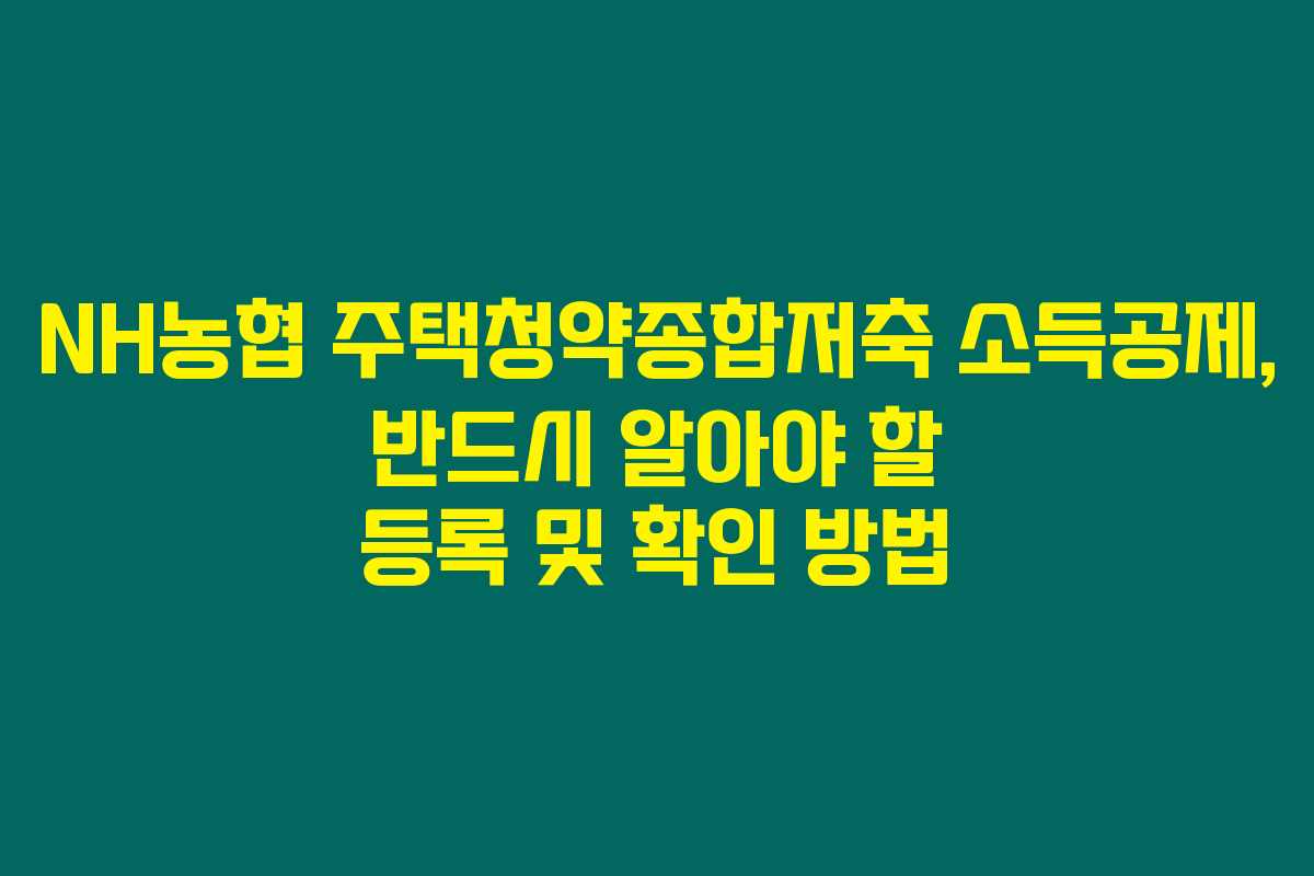 제가 직접 체크해본 바로는, NH농협의 주택청약종합저축은 소득공제 혜택을 받을 수 있는 필수적인 통장입니다. 많은 사람들이 이 통장을 통해 연말정산 시 소득공제를 받기 위해서는 미리 등록이 필요하다는 사실을 모르고 있는 경우가 많습니다. 아래를 읽어보시면 소득공제 등록방법과 확인 방법을 자세히 알아보실 수 있습니다.