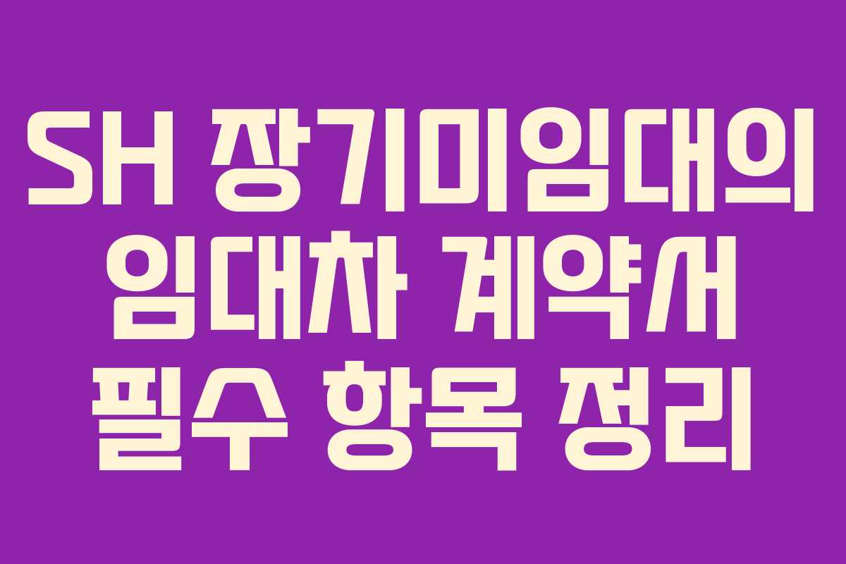 SH 장기미임대의 임대차 계약서를 작성하는 것은 단순한 행정 절차가 아닙니다. 이는 향후 주거 안정성을 보장하는 중요한 과정이며, 이에 따라 필수적으로 포함해야 할 항목들을 잘 이해하고 준비하는 것이 필요합니다. 이 글에서는 제가 직접 계약서를 작성한 경험을 바탕으로 필수 항목들을 정리해 보도록 하겠습니다. 초보자와 경험자가 모두 활용할 수 있는 유용한 정보를 제공할 것입니다.
